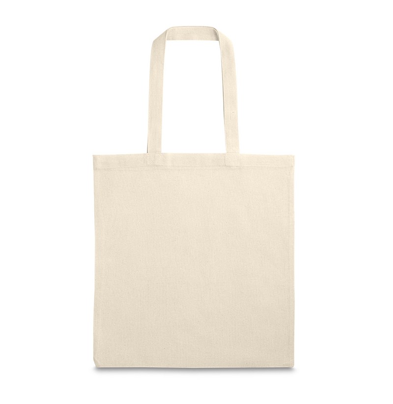 Bolsa 100% algodón (140 g/m²) con asas de 60 cm. Producto elaborado bajo norma certificada de uso de sustancias nocivas en textiles. Tamaño: 380 x 420 mm