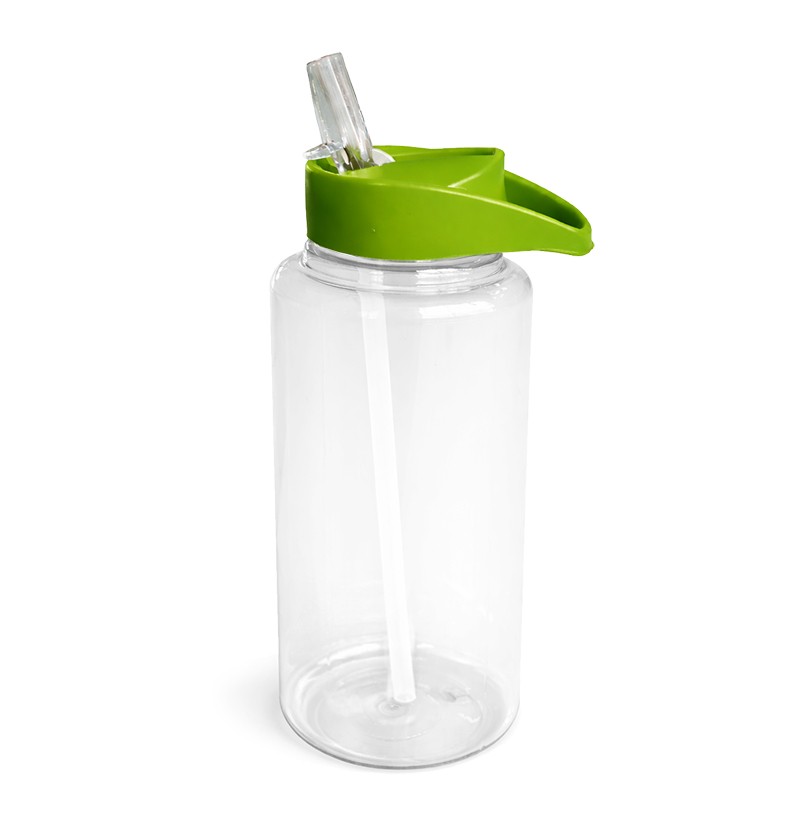 Botella reutilizable de 1100 cc, cuerpo transparente de alta resistencia con tapa de color. Cuenta manija incorporada a la tapa y pico abatible con sorbete integrado, lo que facilita la hidratación en movimiento. Su diseño liviano la hace ideal para uso diario en cualquier actividad. Boca ancha para una limpieza fácil (no apto para lavavajillas). Apta para bebidas frías. Libre de BPA.