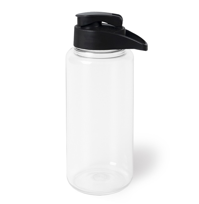 Botella reutilizable de 1100 cc, cuerpo transparente de alta resistencia con tapa de color abatible. Cuenta manija incorporada a la tapa. Su diseño liviano la hace ideal para uso diario en cualquier actividad. Boca ancha para una limpieza fácil (no apto para lavavajillas). Apta para bebidas frías. Libre de BPA.